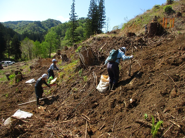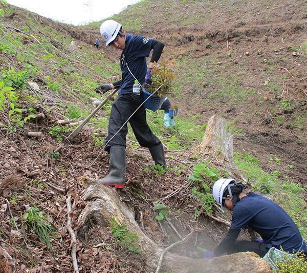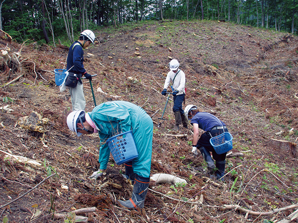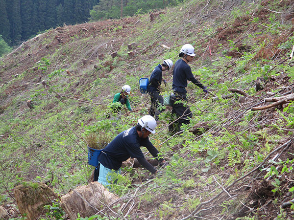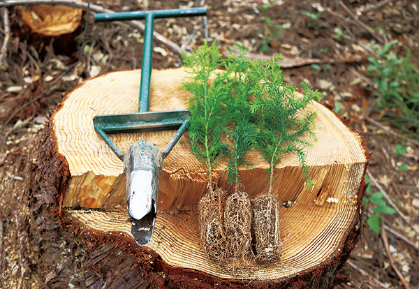 造林部門 先人の教えであり、林業経営の基本理念・・・「伐ったら植える」 新しい造林技術・多様な樹種の植栽施業・低コスト造林に挑戦します。 【コンテナ苗木植栽】 【複層林施業】 【針広混交林誘導施業】 【エリート樹種の植栽】