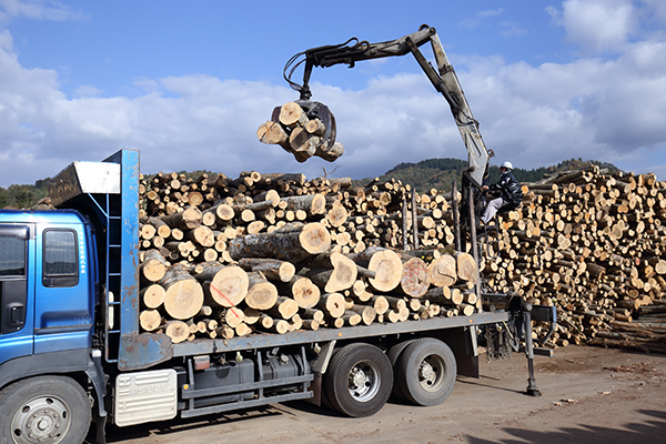 運輸部門はきめ細やかな運輸計画に基づいて商材・造材部門・製材部門・チップ部門の連携を図ります。